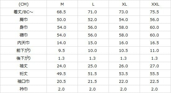 XXL 着丈 75.5 / 肩幅 56 / 身幅 60